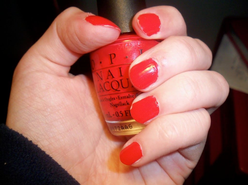 The color is a very vibrant orangey red that is nice and shiny especially with the top coat. I also found the application very easy and opaque. I definitely would recommend this one for a good stand-by red. I find that I really like wearing bright reds.